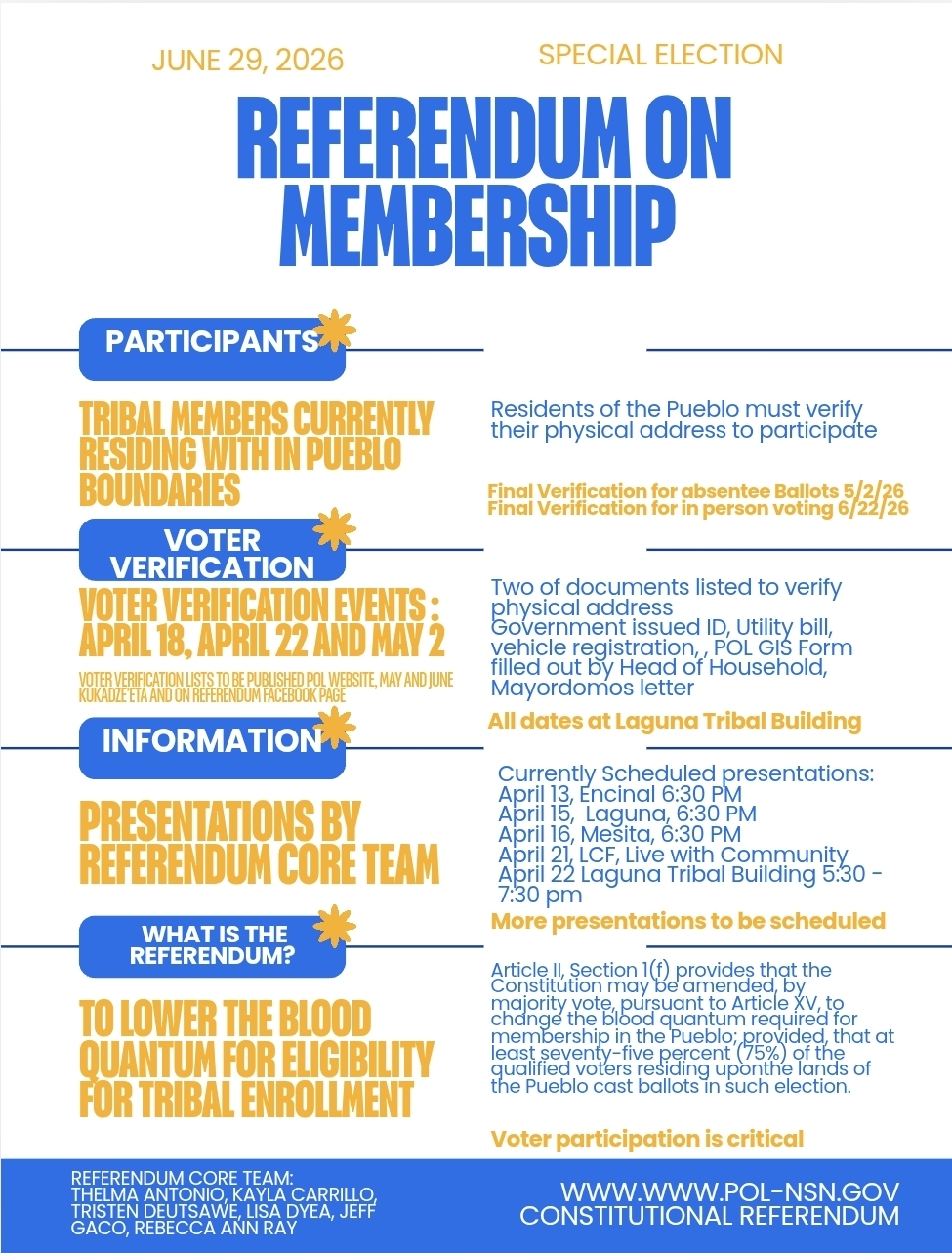 The residents of Laguna Pueblo live in six villages which are Laguna, Mesita, Paguate, Seama, Paraje, and Encinal. The Tribal administration building is located in the village of Laguna. You can experience the uniqueness of our Pueblo by visiting in person.